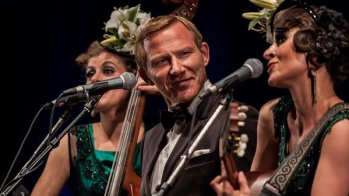 Dass Roland Jankowsky auch singt, zeigt er nicht nur in seinem „Villon-Soloprogramm“, sondern auch ganz stilvoll beim Swing mit den Zucchini Sistaz.